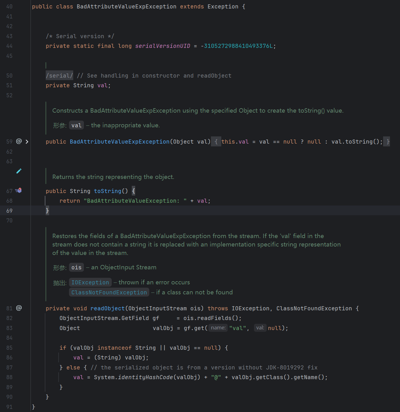 jackson2链中的入口,在JDK17里 BadAttributeValueExpException 利用不了了,没有触发 toString 的点了